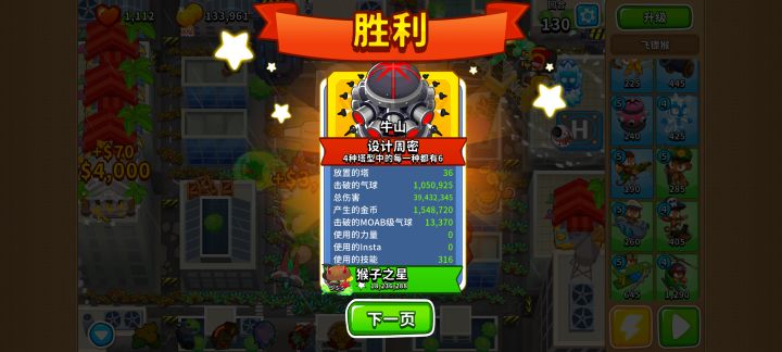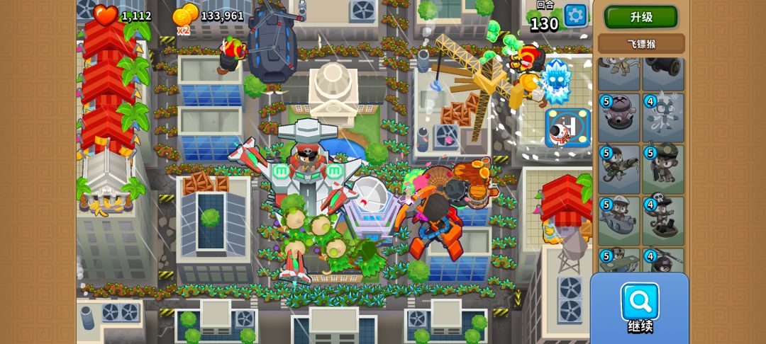 6、感觉输出足够稳过了,就升级6级农场和海盗船。升级后准备忍者猴的6级猴,或者海盗船的6级猴。本人是忍者猴的6级,要在第四个boos过中间石桥前合成!!出了两只6级猴感觉有点压力,就把猴舍升级到250。