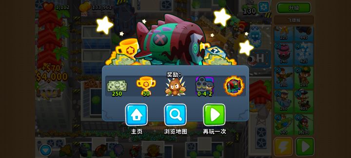 7、在最后一个boos过石桥钱合成海盗船6级猴,3只6级猴子感觉怪跑的太快,可以在地图空白位置补充几只冰猴,用来减速。