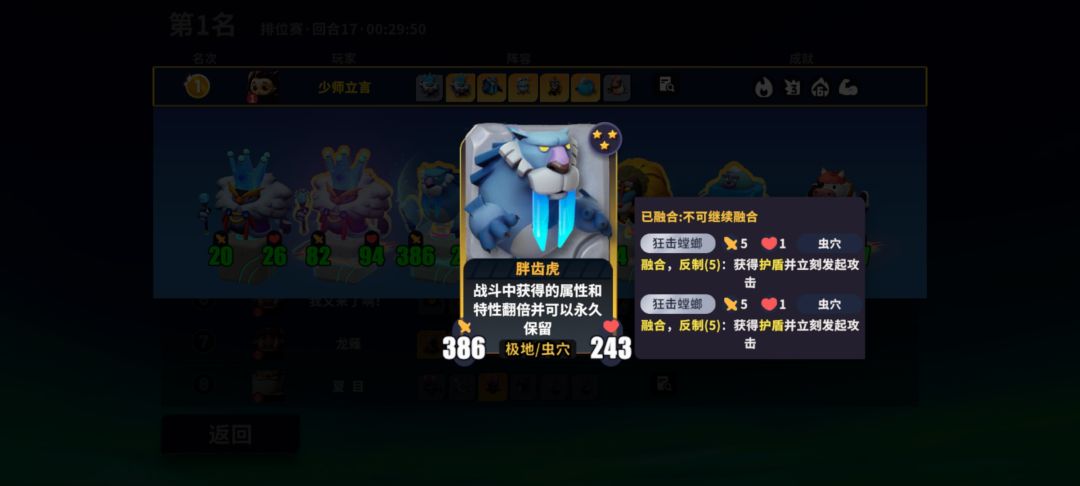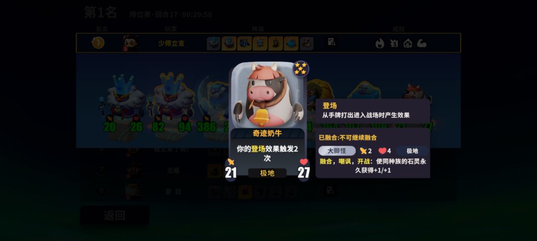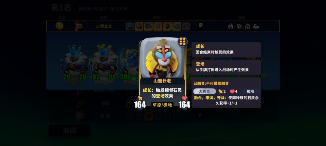 并且我的奶牛和山魈长老和奶牛都融合了极地的大脚怪,全场极地种族让雪兔的效果达到最大,金色豹冰配合伊波恩的技能刷钱,手残党的我每回合金币用不完