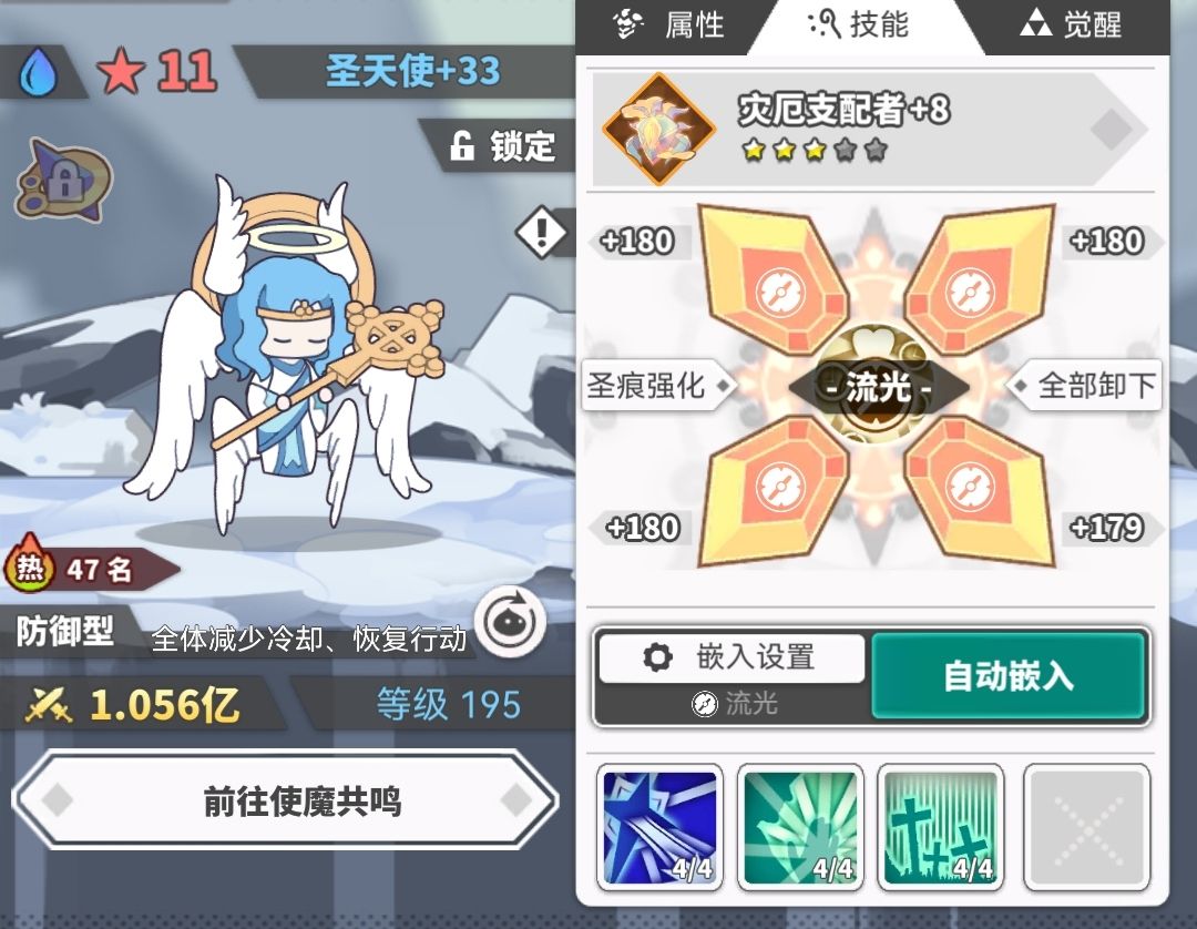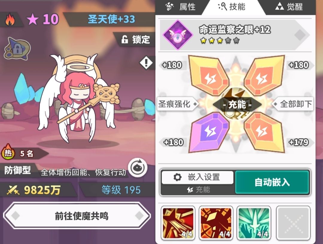 辅助4:火天使。加攻和回能。其他加攻,或有光环的都适用。