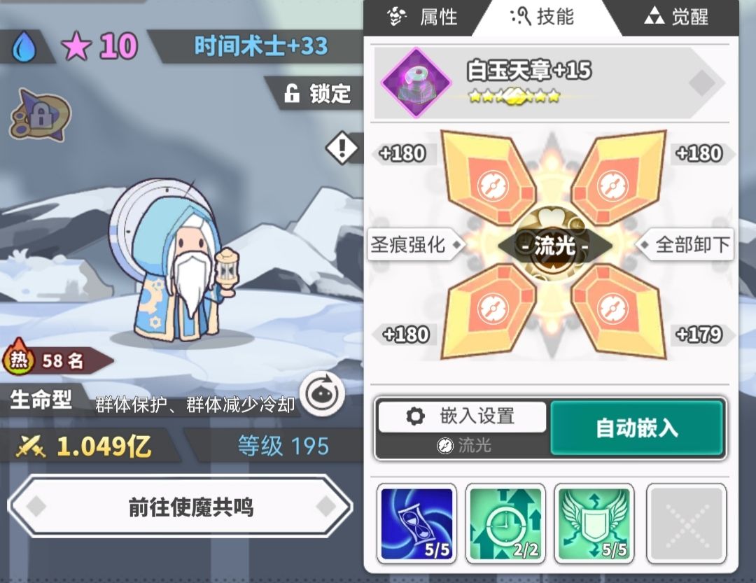 辅助2、3:水天使,水老头,加冷却。快速助力光龙憋大招,确保光天使手握复活不团灭。