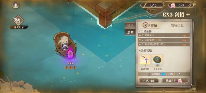 艾蕾雅梦境 EX3 新手向,森队无 6 星狙击角色的过法(没 6 星不代表 5 星没练度哦):库斯塔库、李天闲、希卡蕾、爱洛拉,上述五星角色需要武器 10 级,能三觉最好,关卡里会自动提升等级。一个雷队 6 星做队长璇极我的是 3 觉 1 破 10 级。