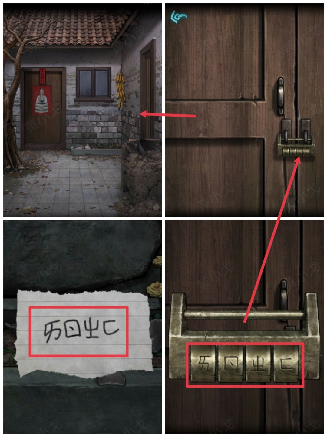 18.点击中间门上的锁,用【钥匙】打开,进入屋子