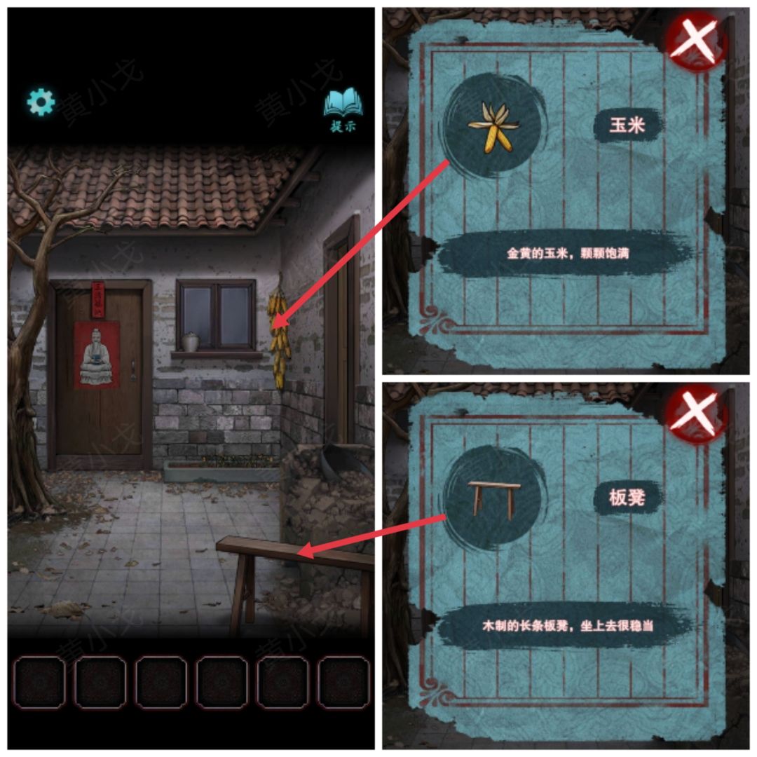 1.(院子)点击获取地上的【板凳】,玉米串上的【玉米】