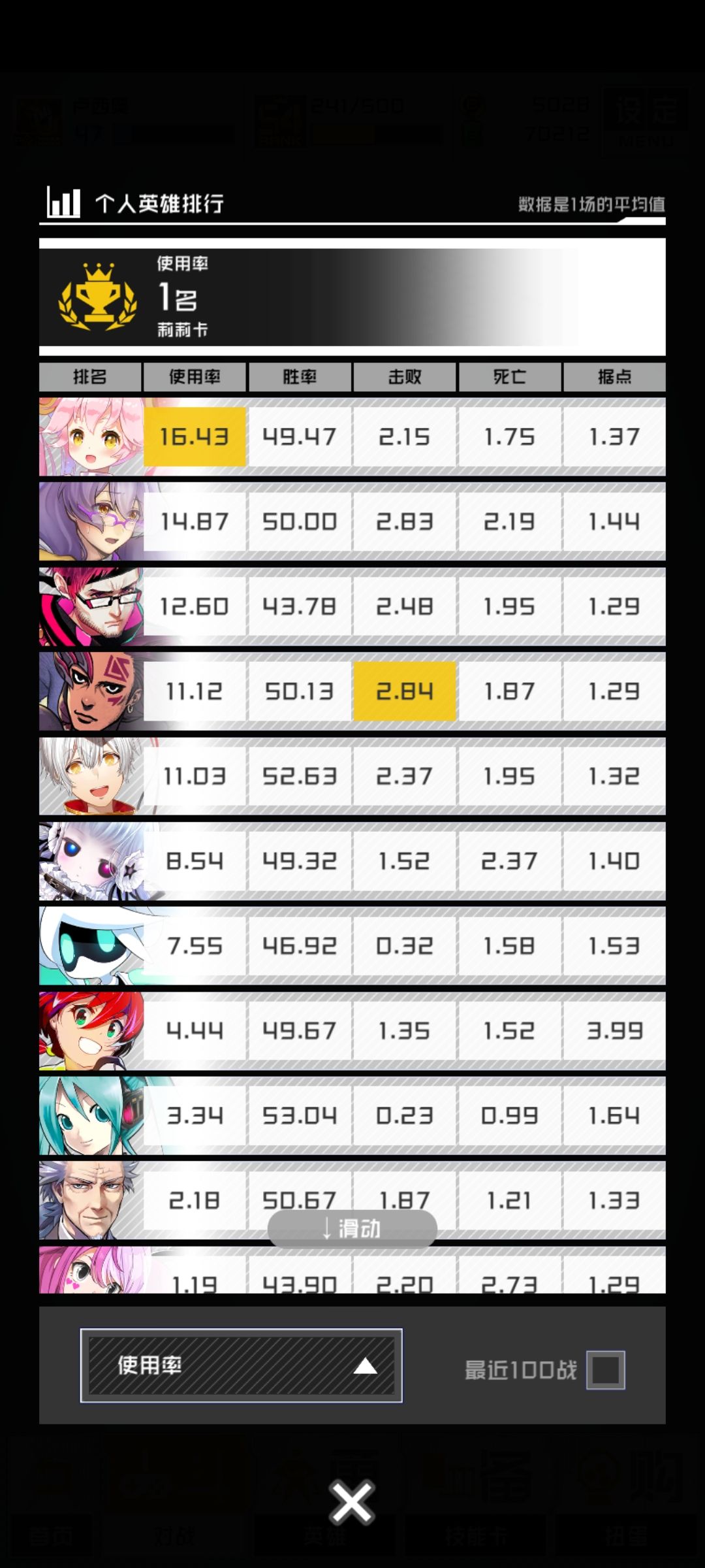 附上英雄使用率莉莉卡566场,