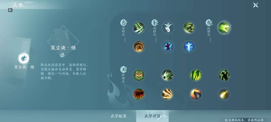 外功近战,通过接连不断的连招,让敌人难以防御,拥有顶尖的单体外功输出以及单体控制能力,其打击感更是在众门派中独树一帜。