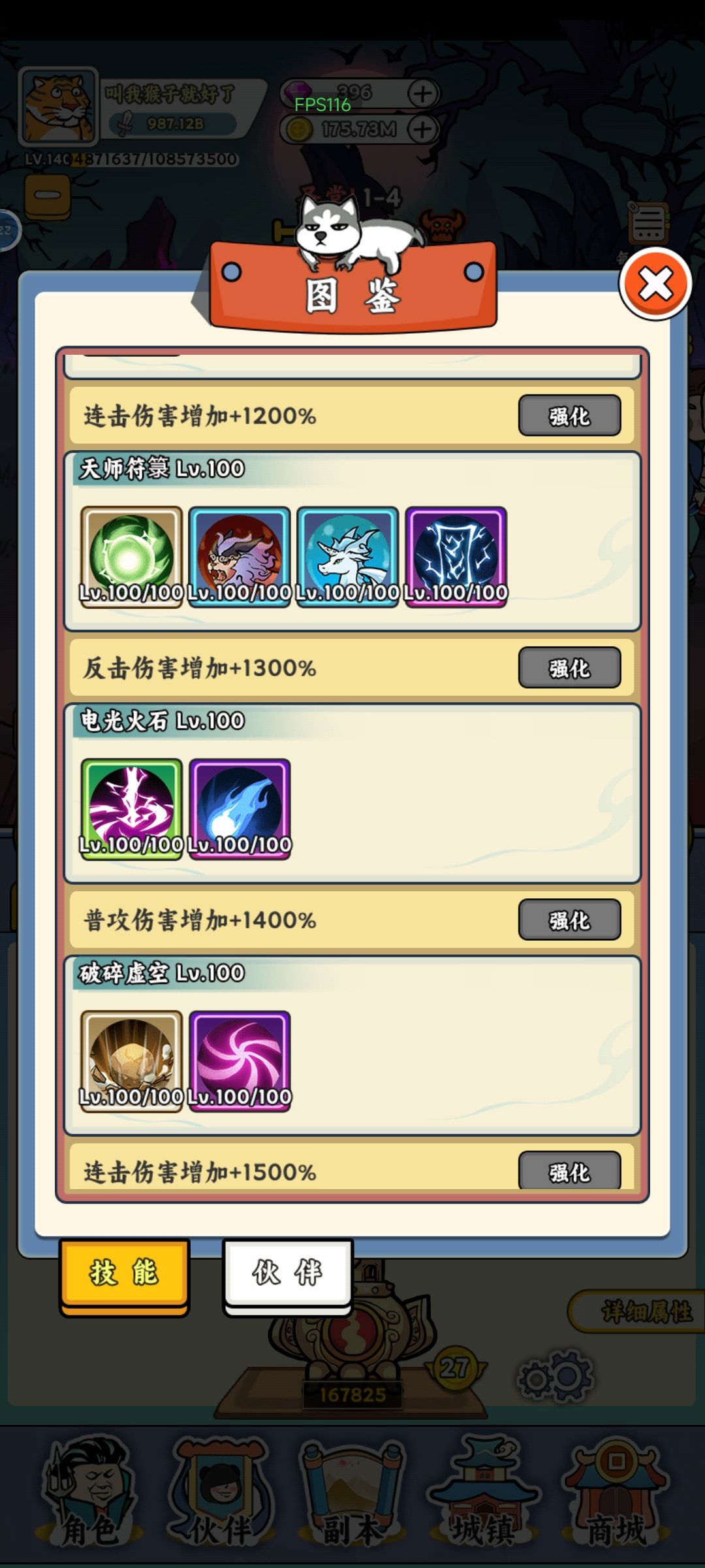 后期技能是没啥大用的还卡,靠图鉴的普攻和连击输出,炉子选暴击连击,没有丹的话先搞套暴击,圣物的话中间3个和我一样就行,其他都不是很重要。猫神的话一个全局一个BOSS伤剩下的可以都是爆伤,也可以多搞个全局,BOSS伤的话最好不要太多打小怪都麻烦。还有就是可以的话加我龙哥公会1194237。记得每天签到,还有就是新的一年大家都要开开心心的啊