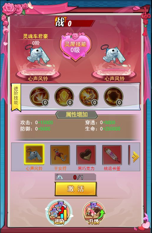 4、结缘双方对应信物的阶数满足要求后,可激活或升级该信物的灵犀技能,可增加大量属性!