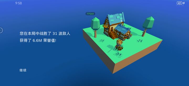 无尽模式打到31关了,这游戏算是打通了不玩了,整体还是可以的,前期多刷几把功勋把商店等级都刷上去,游戏里不断升级水晶,角色也一直敲水晶,然后四个塔平均升级就可以了,两个塔升攻击范围不用升血,护卫没必要买,用处不大