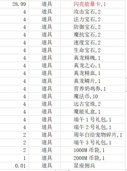 本周屠龙的礼包送闪亮能量卡,1