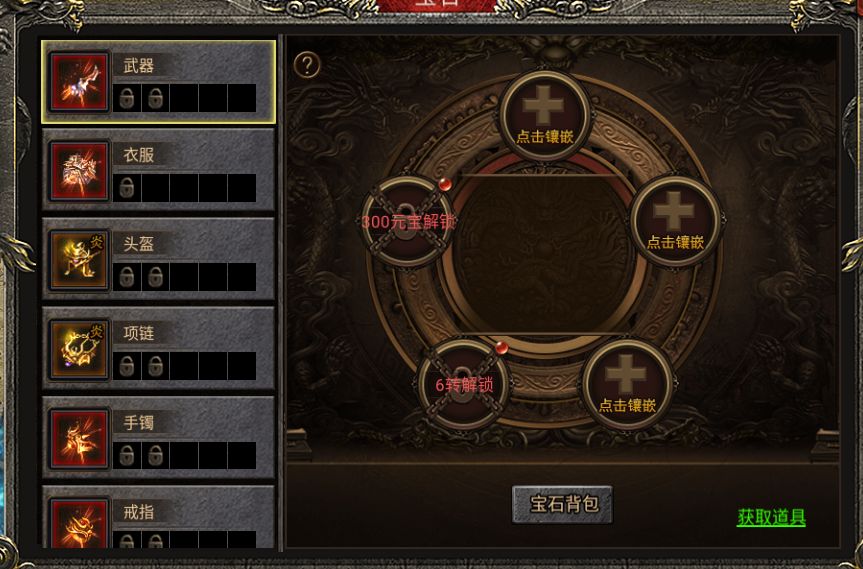 4、宝石镶嵌槽解锁按顺序解锁