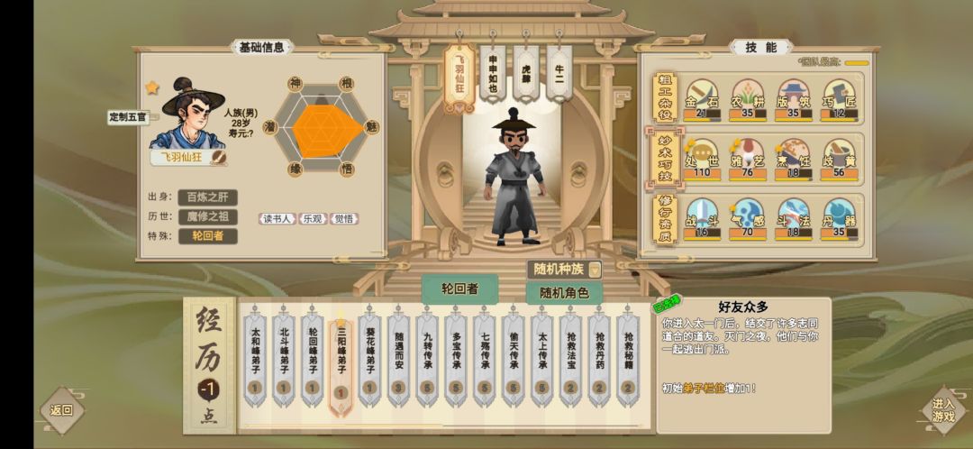 四、炼丹牛思绪:岐黄+机缘+魅力+气感+丹器【功法选符修,一般5个灵智就可以启智了】