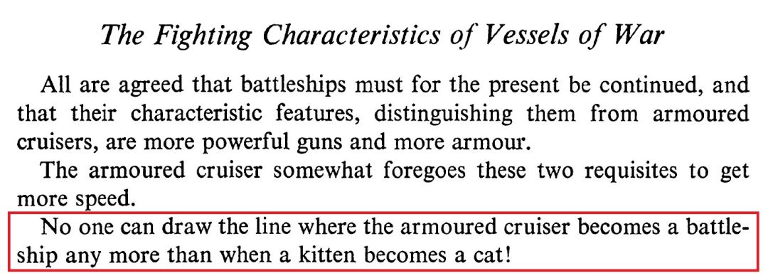 ——“...说回到舰种分类,一个东西是装甲巡洋舰还是战列巡洋舰还是高速战列舰,对费舍尔,对贝尔福德,对丘吉尔,对罗斯福,对希佩尔,对简氏防务期刊,对中国普通军事爱好者,理解实际上都可以是不同的,这取决于他们的生活场域。对后两者来说,这玩意是一个同切身的运用和体认无关的纸面概念,所以才觉得这个概念和其他概念之间一定要有边界,一定有本质属性上的差别。实际上是不一定的...”
