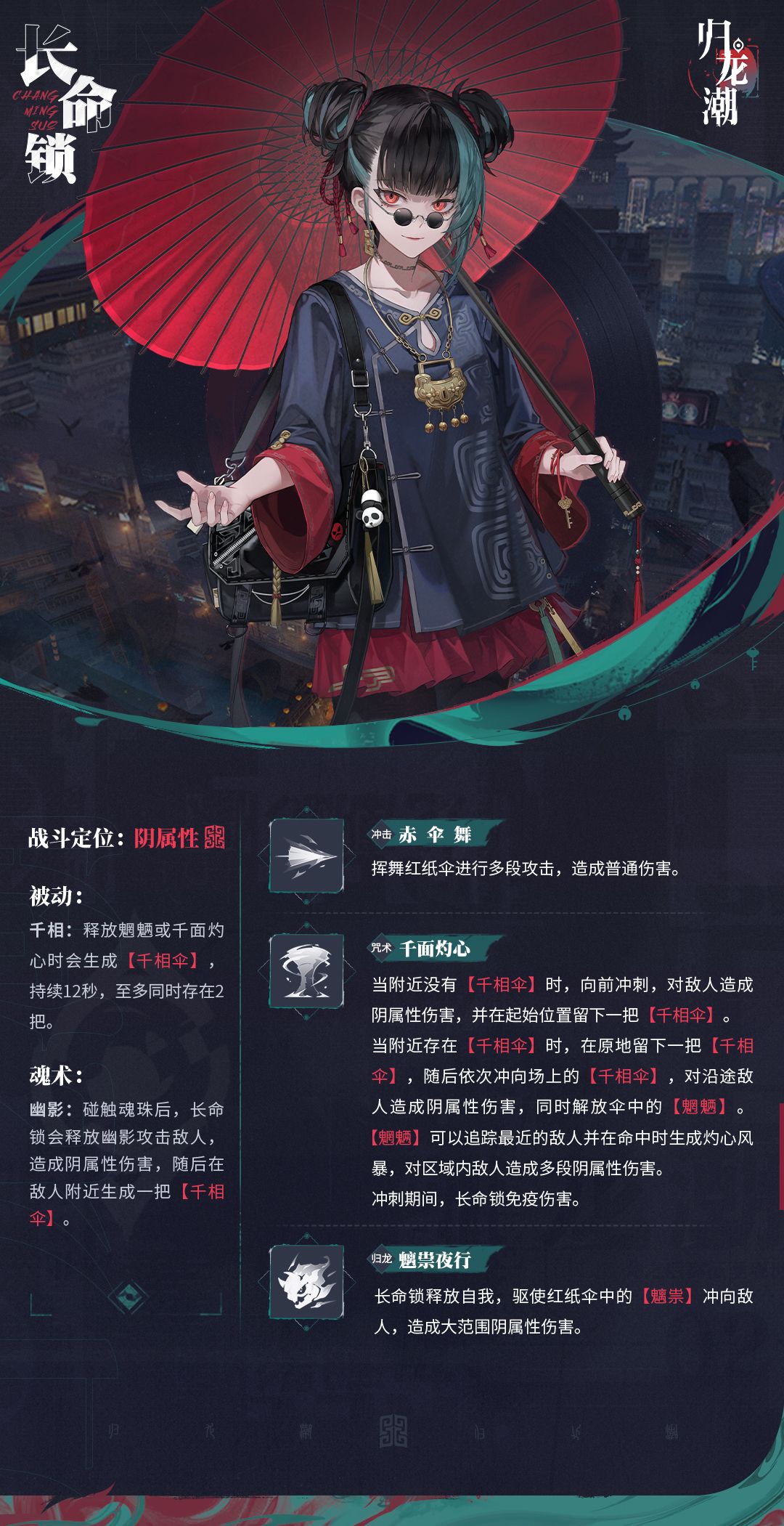 “舞伞做戏化魑影,身引魍魉祸万敌。”