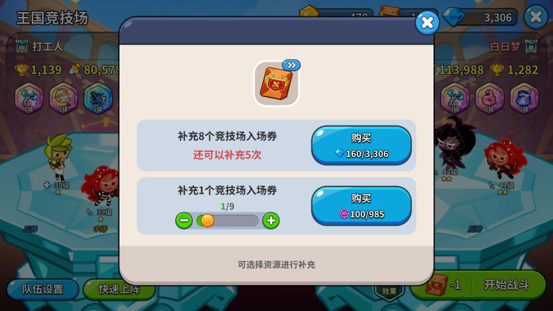 没事的时候大家可以来刷一刷王国竞技场,获得的奖牌可以在奖牌商城兑换材料。而且,后续城堡升级,或者很多活动的奖励获取,都对刷竞技场的次数有要求。主要是入场券每天有8次免费的,不用完第二天刷新了。