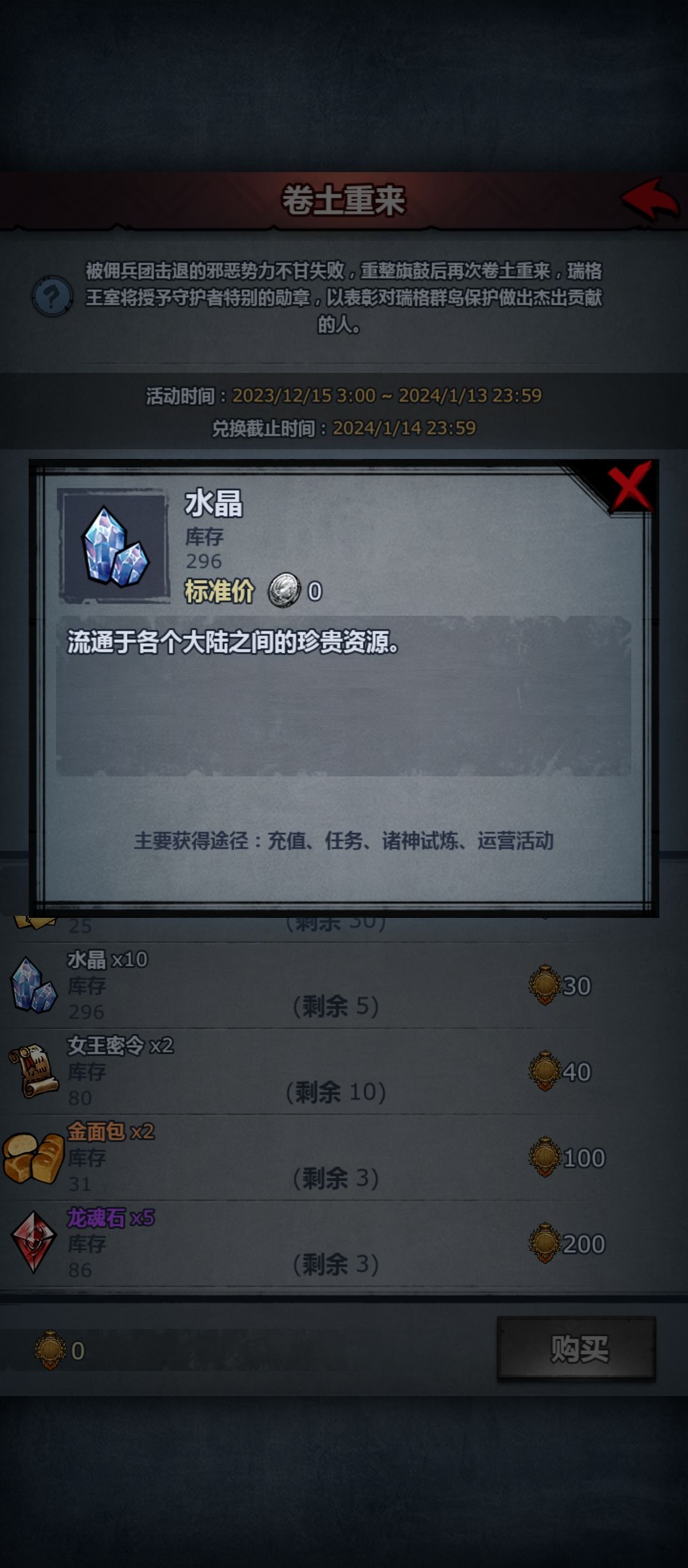 卷土重来×50(需要150王室勋章)