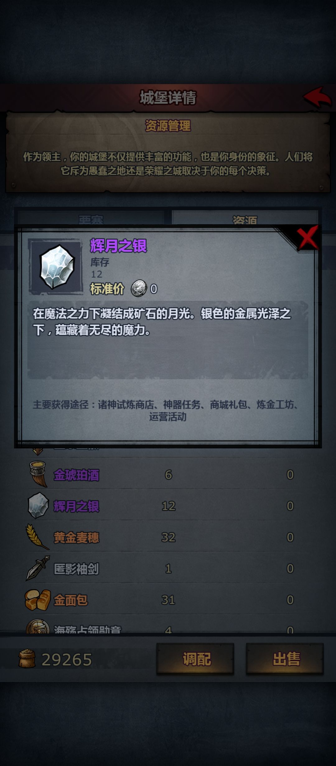 每月可固定获得7个。可以用来升级神器、注入神力以及通过炼金转化为烈阳之金。烈阳之金等效于辉月之银,前者用于玛夏神器,后者用于加尔提兰神器。神器是诸神皇冠里最强的装备,作为专属的升级道具,辉月之银也非常重要,但因为只有部分神器对升级具有刚需,所以获取优先级要低于灵魂结晶。