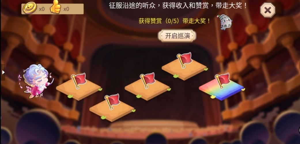 开启巡演,征服沿途的观众,不同地区听众口味不同,选择到更符合听众口味的曲谱可获得赞赏。