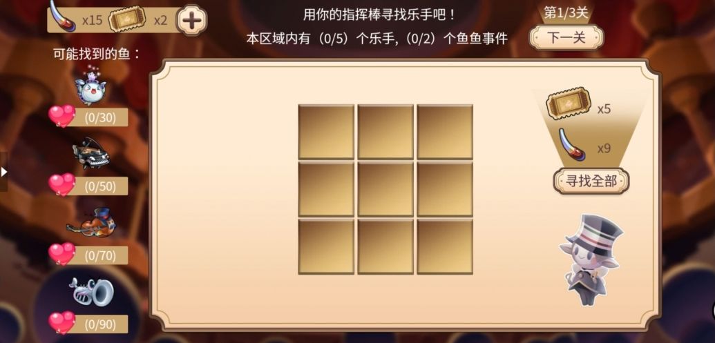 使用指挥棒在区域内寻找乐手,还有机会触发鱼鱼事件。