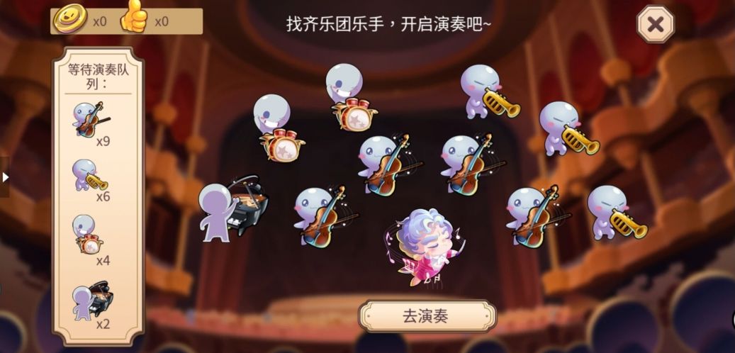 找齐乐手,开启演奏。左侧会展示等待演奏的队列~