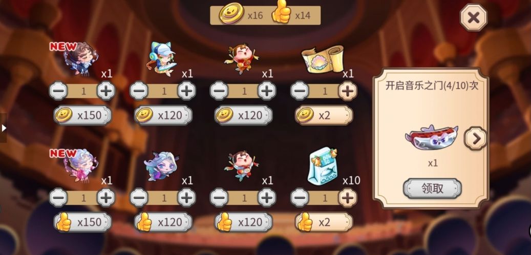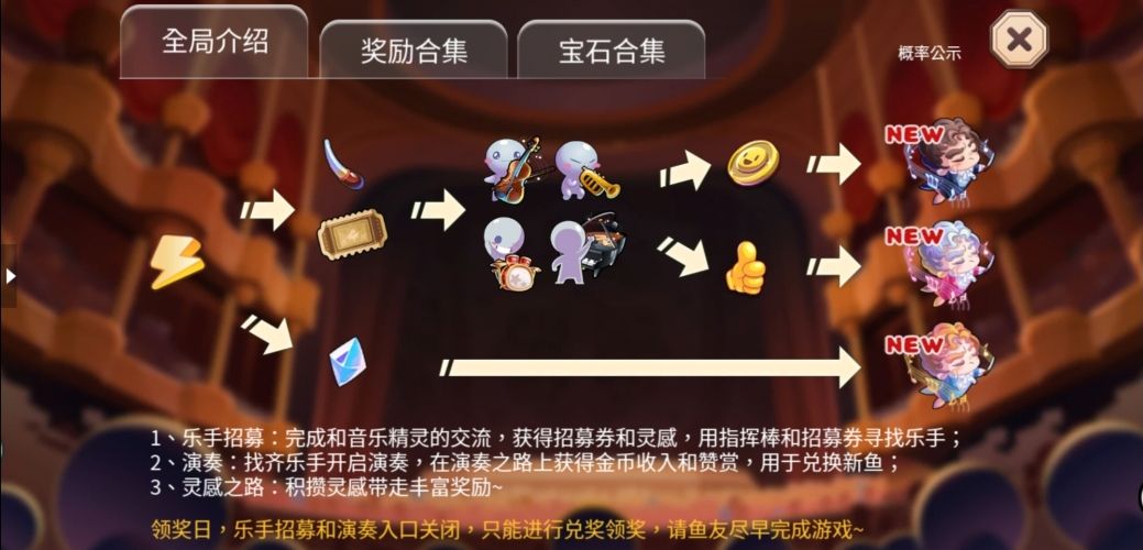 找齐乐手开启演奏获得奖励。