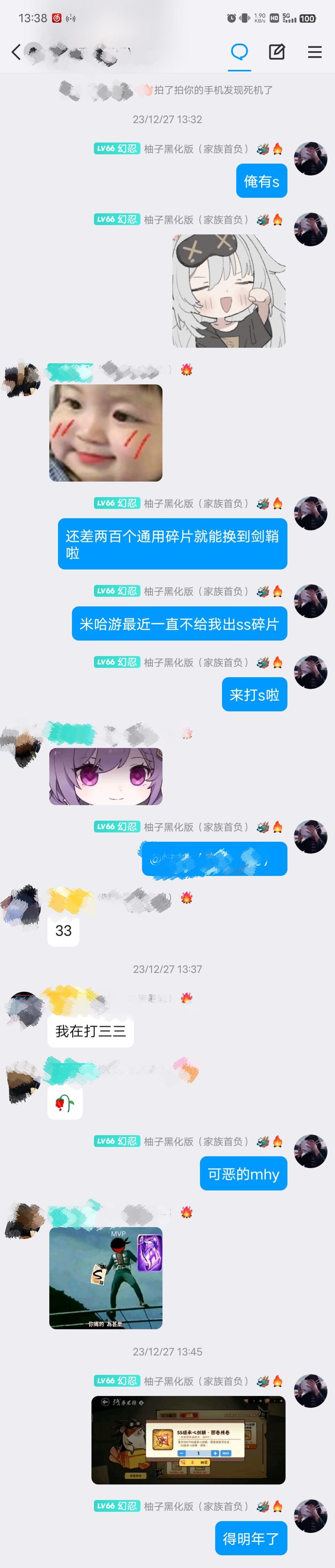 从去年年末的时候,我的剑鞘碎片快要又攒齐一个了,每天都期待二勾的剑鞘,经常在家族小群里记录分享