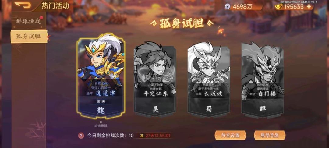 活动内容:活动期间开启限时限定阵营的副本挑战,副本挑战的活动副本共有100层,每次过关可领取悬赏奖励。每日可挑战10次。