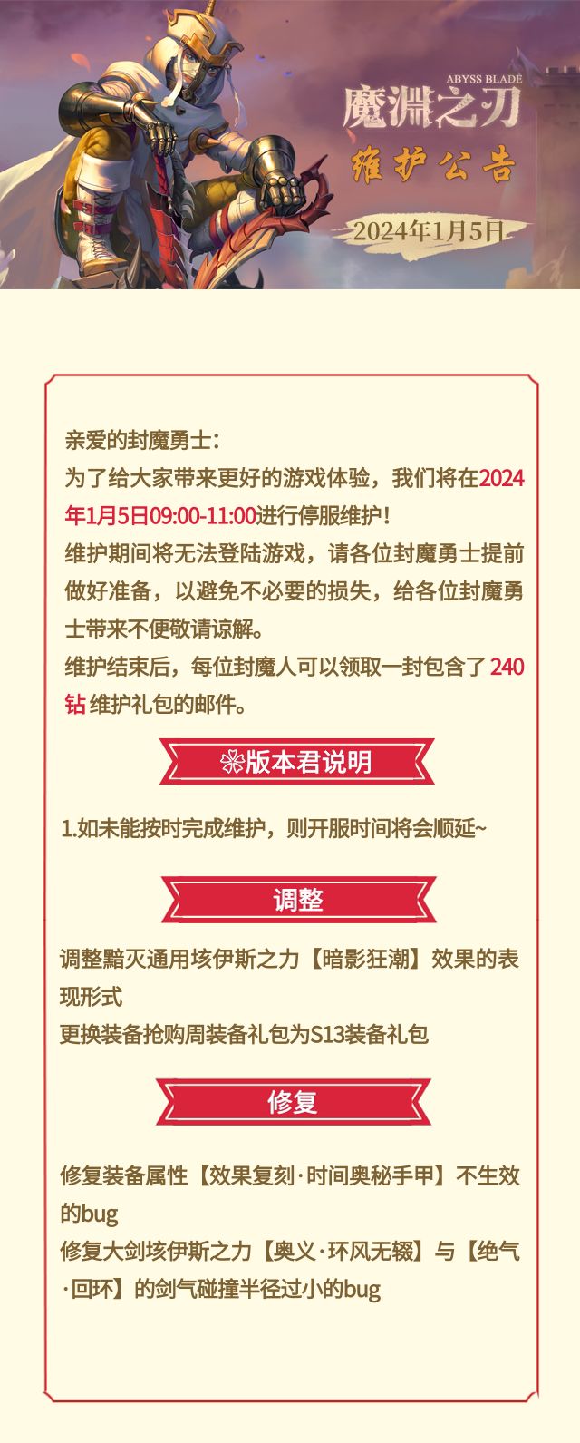 【魔渊情报局】1月5日版本维护公告(内含密令~)