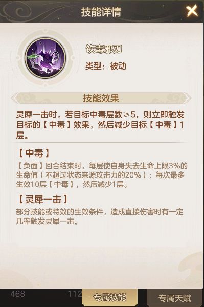 毒队离邪同样以普攻为主,依赖附加伤害(毒)进行输出。在专属技能“饮毒邪刃”的帮助下,能够快速的让毒效发挥作用。