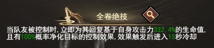 自身技能能提供禁疗效果,对禁疗状态的目标造成伤害时能概率附加强力控制-眩晕!几乎是阴千华又一个神技,你很难见到一个角色同时兼顾伤害、功能与控制,并且数值都不低。