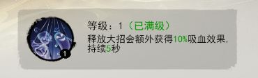 释放大招提供额外吸血效果,强度不高,可以后续慢慢培养,不急需点出;视情况而定优先级不高。