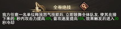 追月秘籍提供全体增伤和加攻速效果,由于阴千华处于后排,不容易死亡,长线作战增益效率最高。