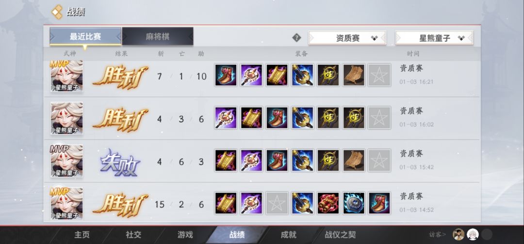 这游戏为什么没人喜欢打野?还有人说星熊很弱的,不过连续两天资质赛超过30局,我试过预设主中副野,中下野,以及全能,结果30多局全玩的星熊打野。基本拿了15局以上MVP吧(败方MVP占多)。这局被队友演了,彼岸花一直在线但一直不放技能不普攻就在那儿转,下路和上路都没拿到优势但一直住那里不带动的,中线全是我吃的。补。截取了大允后资质赛部分比较好的战绩(毕竟我玩还不到七天,有一些局确实没玩好,给省略了),一共24局,胜负的MVP有16局。