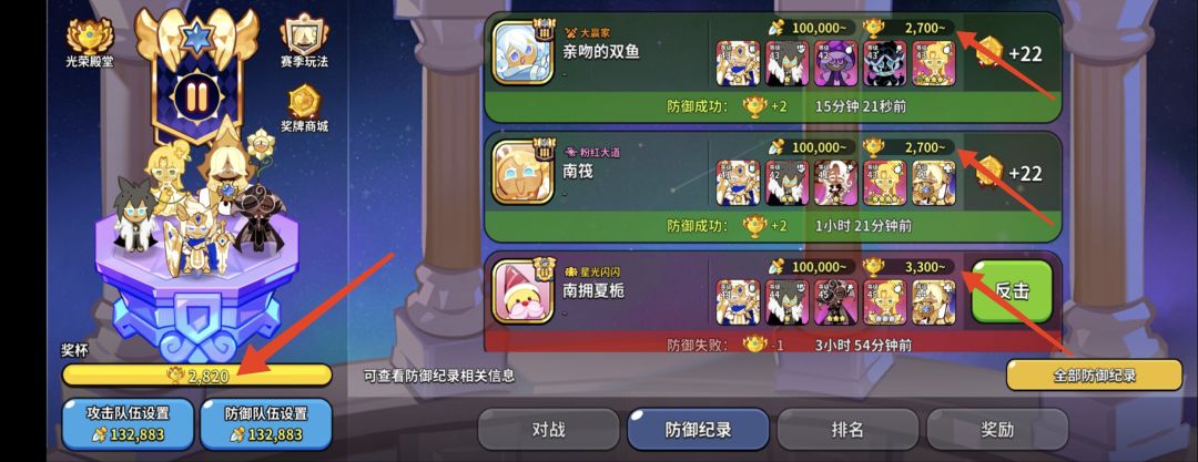 ②防守阵容可以隐藏饼干的时候,记得隐藏关键信息。比如隐藏后排单饼干、隐藏低星输出饼干、隐藏不常见饼干,尽量误导其他人高估你的战力/错估你的玩法。可以尽量少被打、少掉杯。