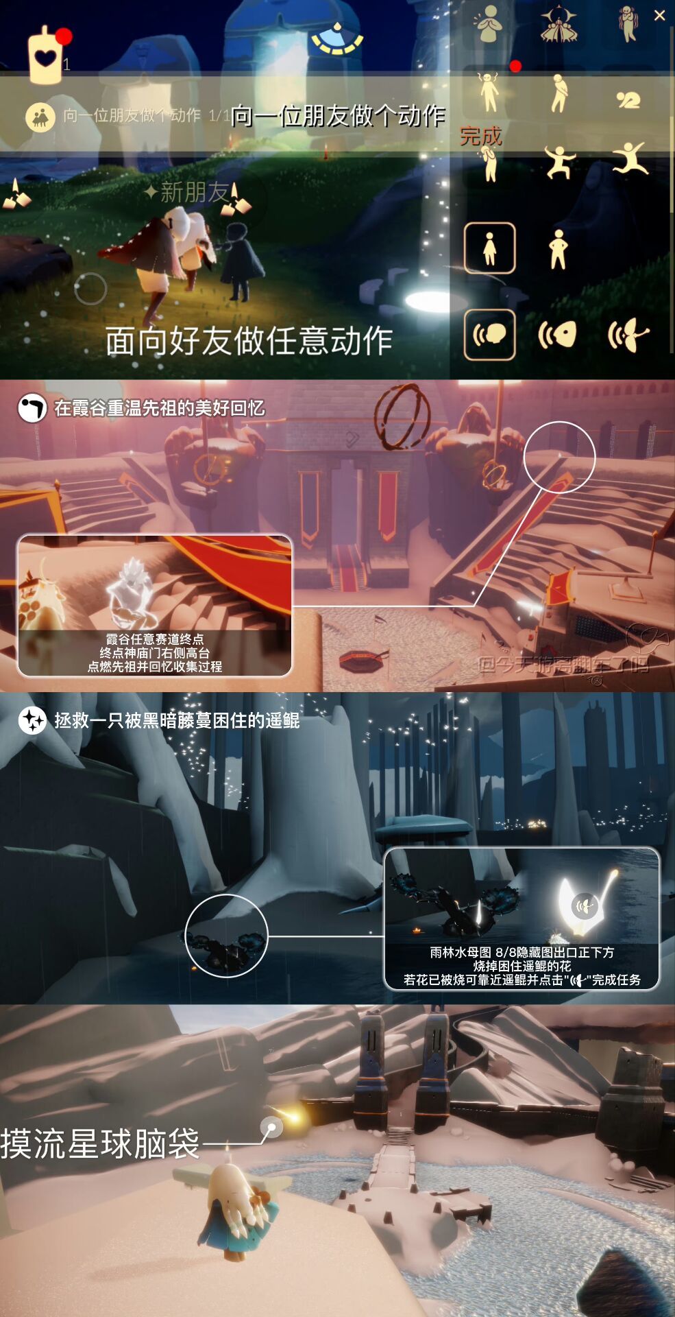 《光遇》游戏中每天的每日任务及大蜡烛的位置都不相同,玩家完成每日任务及收集大蜡烛都可以得到丰厚的兑换奖励,奖励可以用于兑换各种动作及道具,不过很多小伙伴不知道每日任务怎么做,又懒得自己去找大蜡烛的位置,我们汇总了每日任务的完成攻略以及蜡烛位置,一起来看看吧!