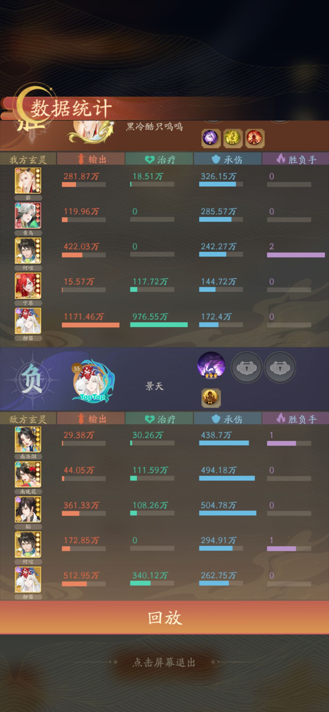 不可否认一家三口的强度没其他人说的那么废 满练度刷到十二章也许有时候会卡 有的时候把柳笛换到一个安全的地方 或者把韬放前面无敌都有奇效 多试几次就好