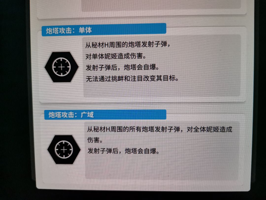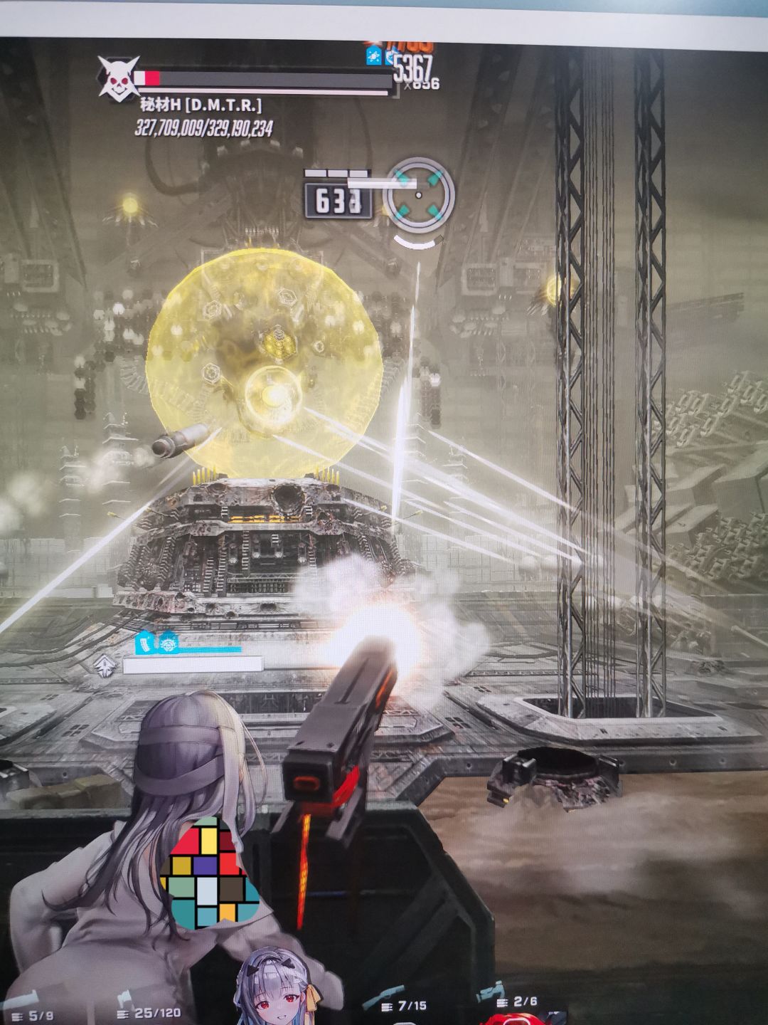 细说:首先BOSS弱点,很明显中间有个大球,哎~对,那不是弱点!弱点是大球下面的那个黄色眼球…然后上面说了出什么打什么:1.固定5个位置(后2前2正中偏下1)刷出的炮塔,会有明显红圈提示,必须立刻手操打掉红圈!红圈转完会指定随机一个角色发射单体攻击然后爆炸(图4)伤害很高!!!2.中间大球无敌黄盾(真无敌,穿透无效)后,正上方降下来的4个飞行怪(图5)。“注意细节”:屏幕中间有红色警告然后BOSS开盾,马上把枪口抬起来瞄准还在“降落中”的飞行怪开始攻击,这时飞行怪很脆(图5,白血条,承受正常伤害),一旦降落到大球上方1秒左右会变成红色血条(每次受到攻击只掉1血)就相当于超级肉(小红帽扣了一个:6)。4个飞行怪全击杀后才能打掉黄盾。3.BOSS弱点(黄色眼球),处理完炮塔和黄盾后,全力输出弱点!4.来袭导弹,能打就打,新玩家如果打不过来,进/出掩体规避伤害(基操)。