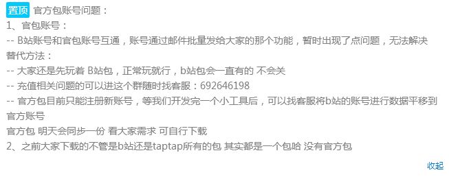 -- 官方包目前只能注册新账号,等我们开发完一个小工具后,可以找客服将b站的账号进行数据平移到官方账号
