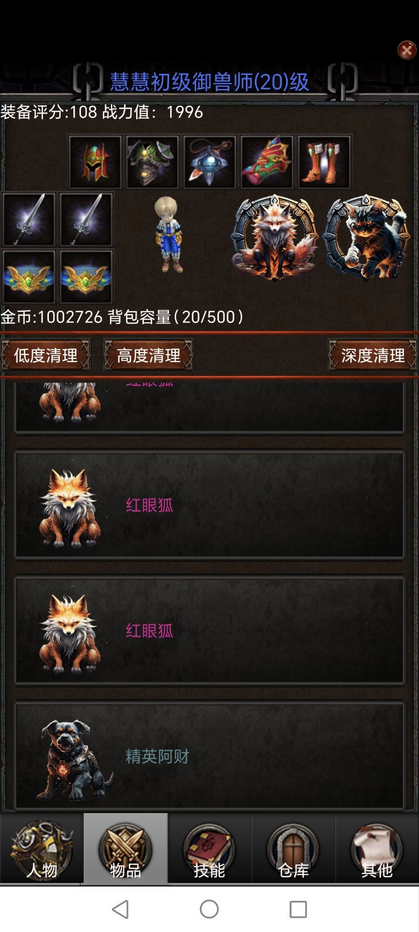 然后就可以在御兽城新手区刷其它的小怪,可以获得精致的戒子,项链,头盔,鞋子.......凑齐全套