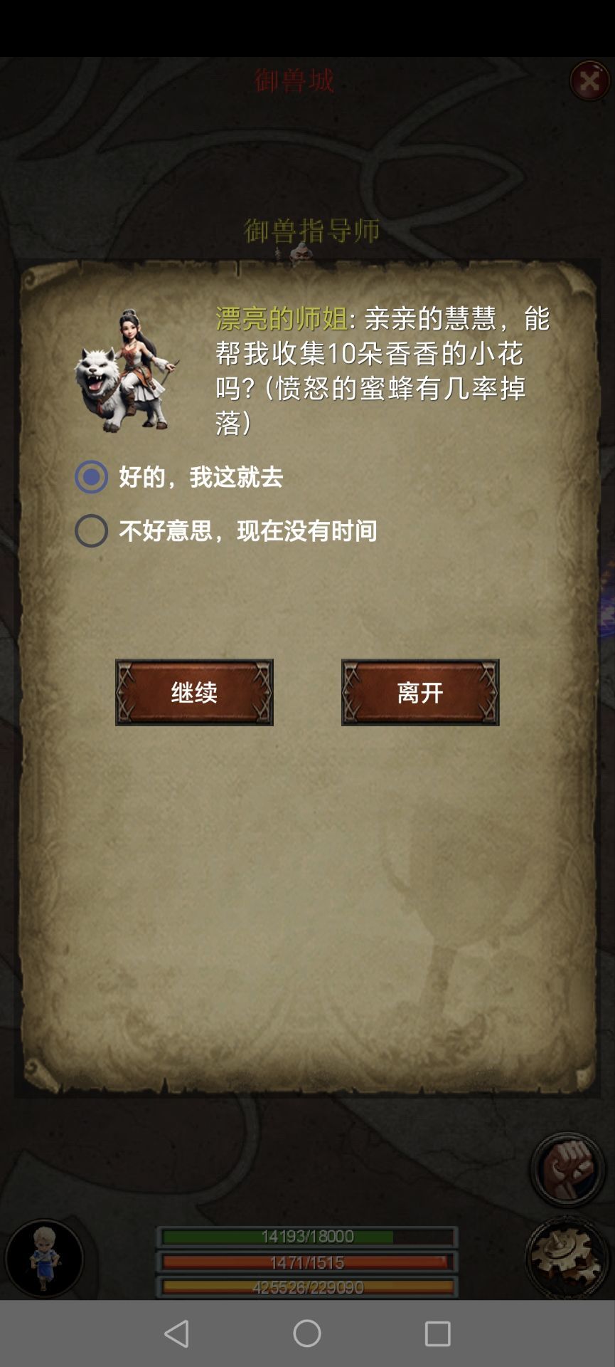出生地御兽城,先刷愤怒的蜜蜂,顺便完成漂亮师姐的任务。