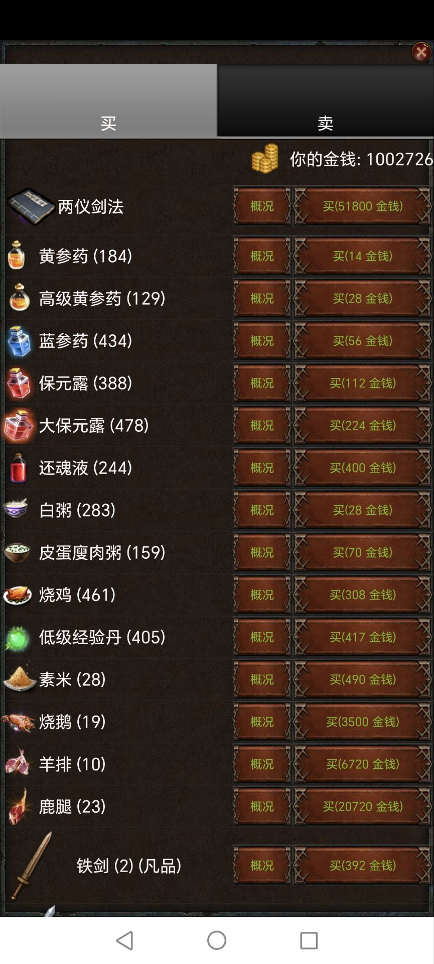 补充物质,卖掉一些不要的装备道具,可以找"亲亲的商贩”,筹集金币,先把“两仪剑法”这个技能买了学习,学了两仪剑法才能发挥两把剑的效果。