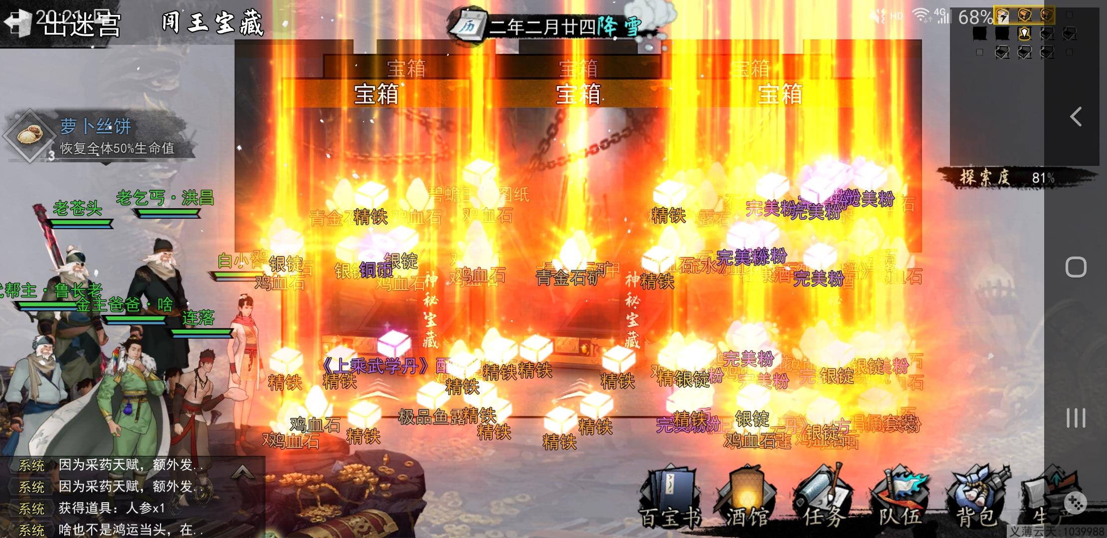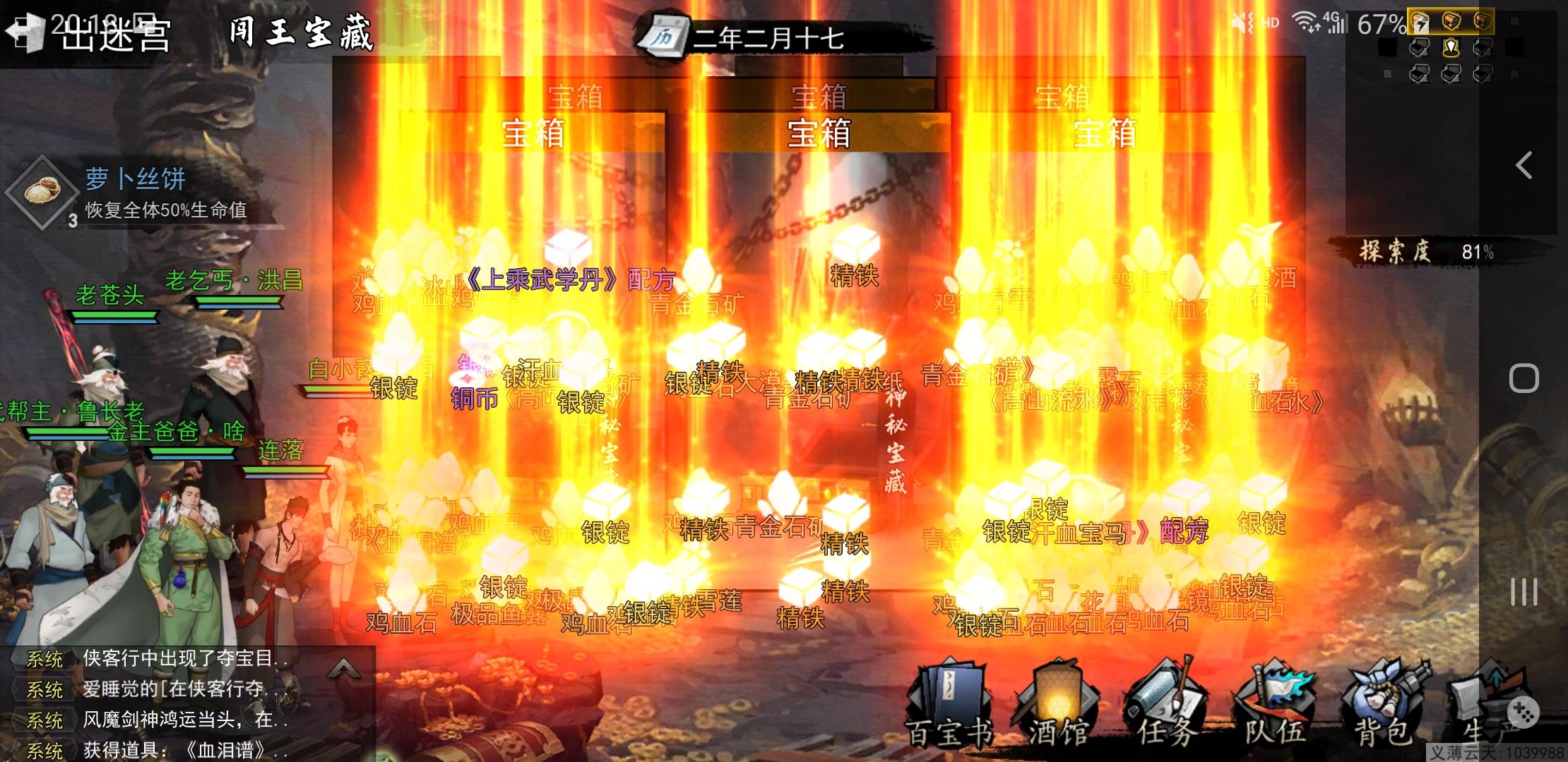 测试了三张闯王,实在不想挖了,吐了快,还有合成材料在队友身上,为了清理背包🎒