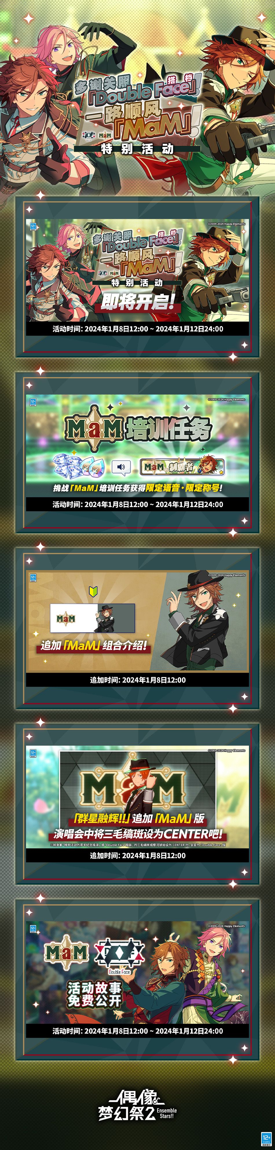 活动期间,游戏内将免费公开「MaM」「Double Face」的相关联活动故事——