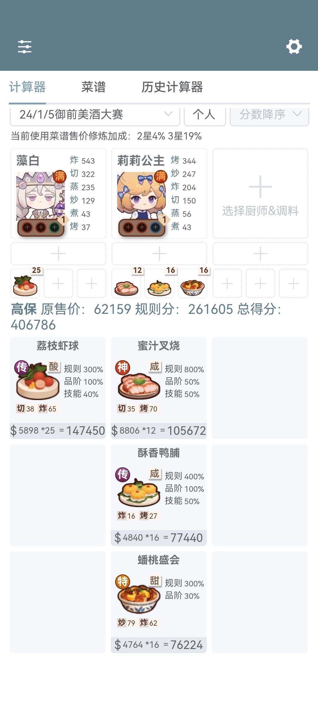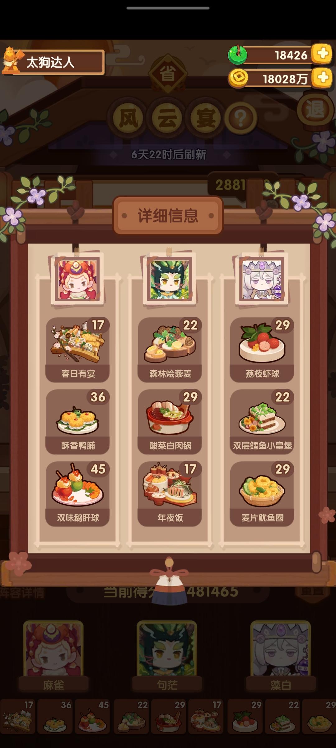 图3、4:本周的宴会参考,有点难,得上好多售价厨具配合基修才能五档,我这纯属运气好