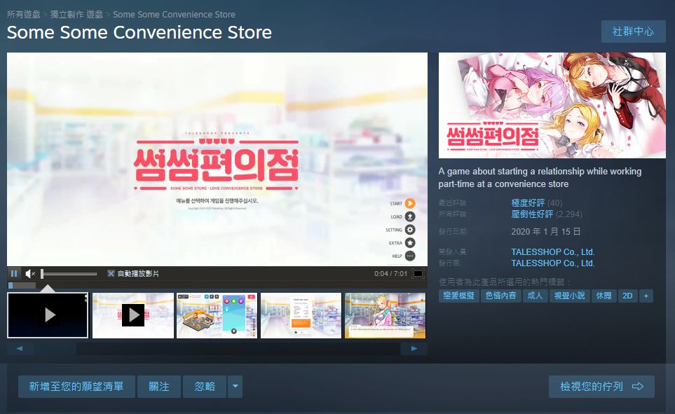 由 TALESshop 开发的恋爱冒险游戏《暧昧便利店》在 2020 年初于 Steam 平台上市后,在韩国文字冒险游戏圈掀起了一股热潮,并获得「压倒性好评」的评价。时隔一年后,由发行商 北京星游 宣布推出简体中文版!