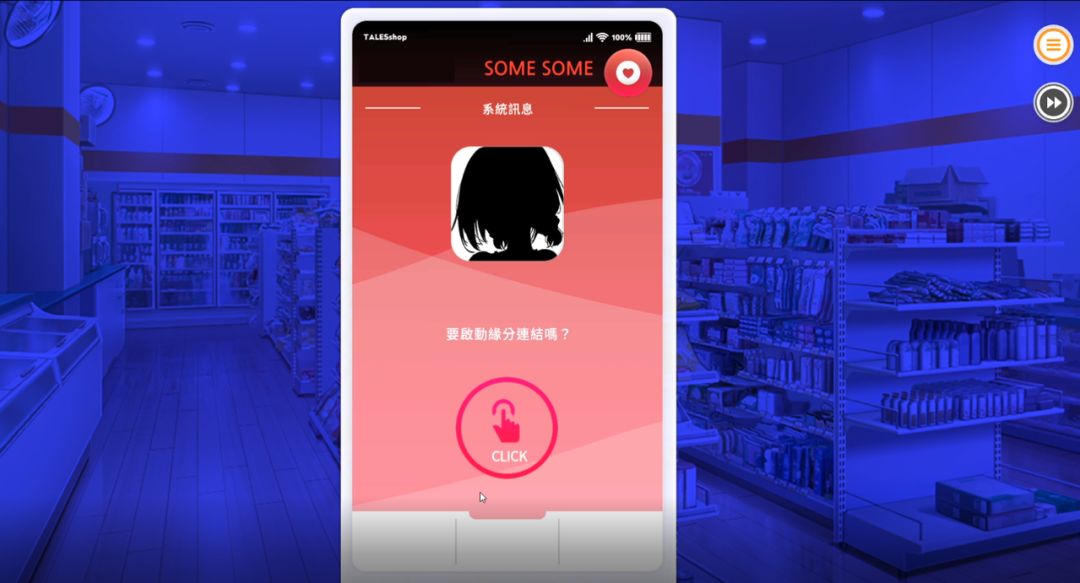 故事中,这款 App 随机帮玩家们配对了一位少女,神奇的是配对后这位少女就神奇的来到了便利商店,并随行了另外两位女性同伴,玩家将在「SomeSome」的引领下,依照 App 给您的建议分别攻略你心仪的女主,从一个一无是处的宅男,转变为高情商且极具魅力的大情圣,在崎岖事件且人设饱满的恋爱游戏中,最后是掳获少女们的心,达成交女朋友的心愿。