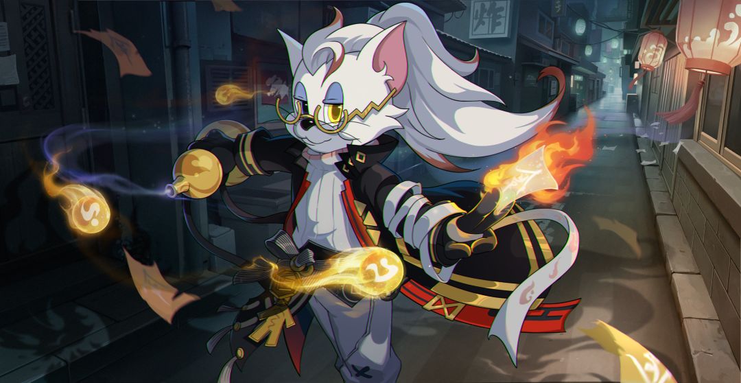 在背景设计上,利用妖兽魂体强调刻画了捉妖师的身份和背景,给整个皮肤增添了一些威严的感觉。