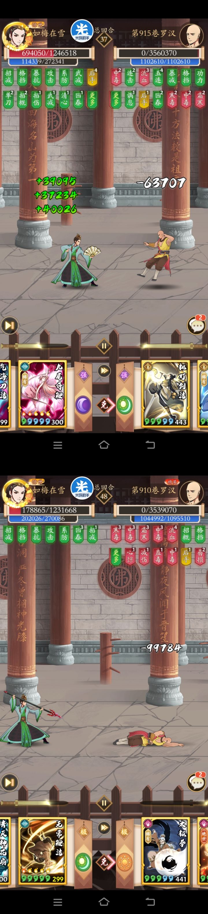 图一:阴奇套直转调和奇,只需把“一步登天”换“换骨之息”,其他什么都不用动,直接木人爬塔,猛得一匹。虽然比不过吸内套,但奇门玩家吸内强度一般,且遇到主韦家的吸内也叫苦不迭,这时试试这套有奇效。