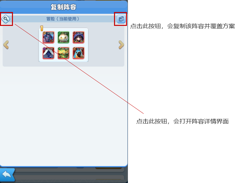 1、 在对应开启快捷编队功能的玩法中,会显示快捷编队【阵容方案】按钮