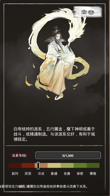 以白帝为例,给白帝投入一个神像,则会减少其它五个的好感度,可通过烧香提高好感度。